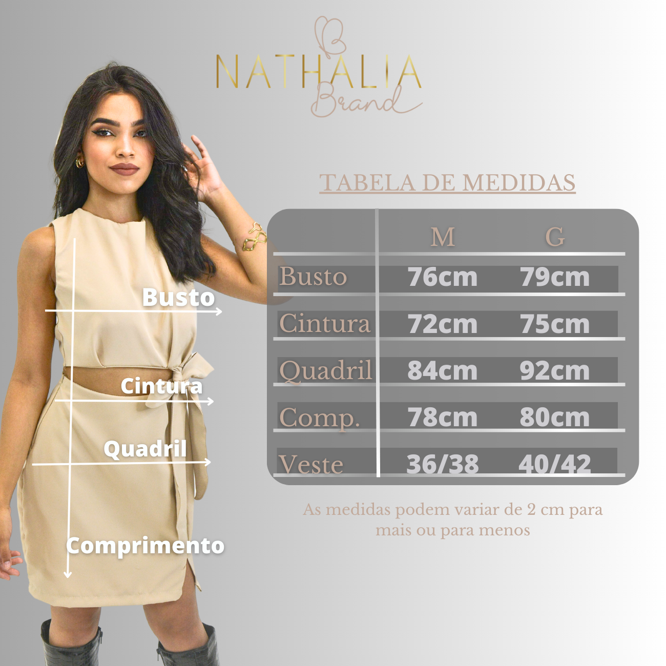 Cropped sem bojo, Saia com detalhe em fenda lateral, e com ziper